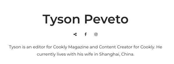 Author page at Cookly Magazine, containing all articles written by Tyson.